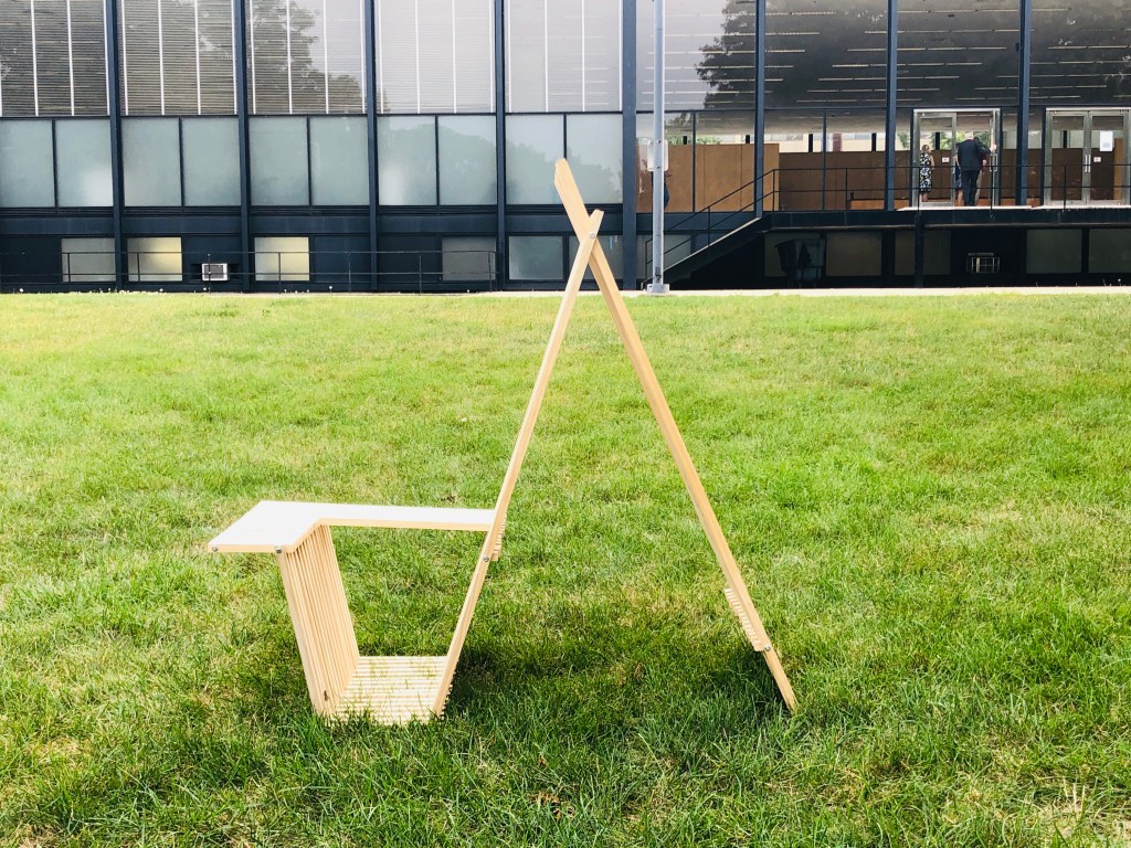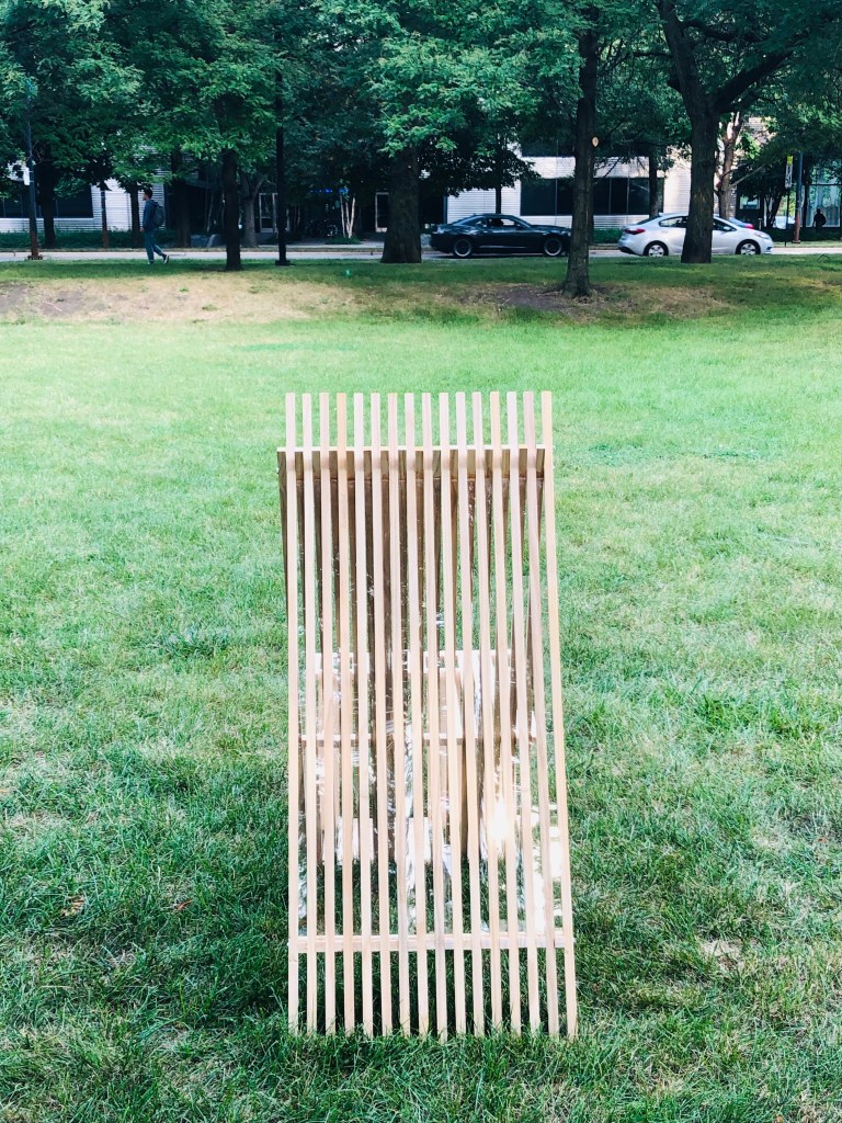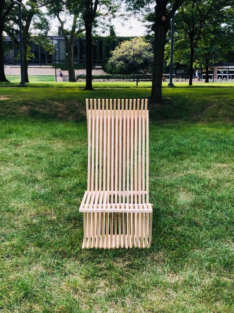 Our project is named BreezeBREAK, we tried to create a shelter that people can sit and park bike along Lake Michigan. We created triangle shape of shelter and placed it face to the lake. I believe triangle is the most stable shape, it can protect people from the wind very well. Also, we added Acrylic between two wood post, this can allow people enjoy the lake view. On my drawing, I showed plan, a section from top to bottom, another section of side, and one section. I used 6 different types of line weight to illustrates the height of BreezeBREAK. I also added human figure right beside the elevation drawing to show how tall the BreezeBREAK is going to be. For the detail drawing, I lay out all the pieces that we used in the construction. I also have the detail of how these wood pieces are assembled.