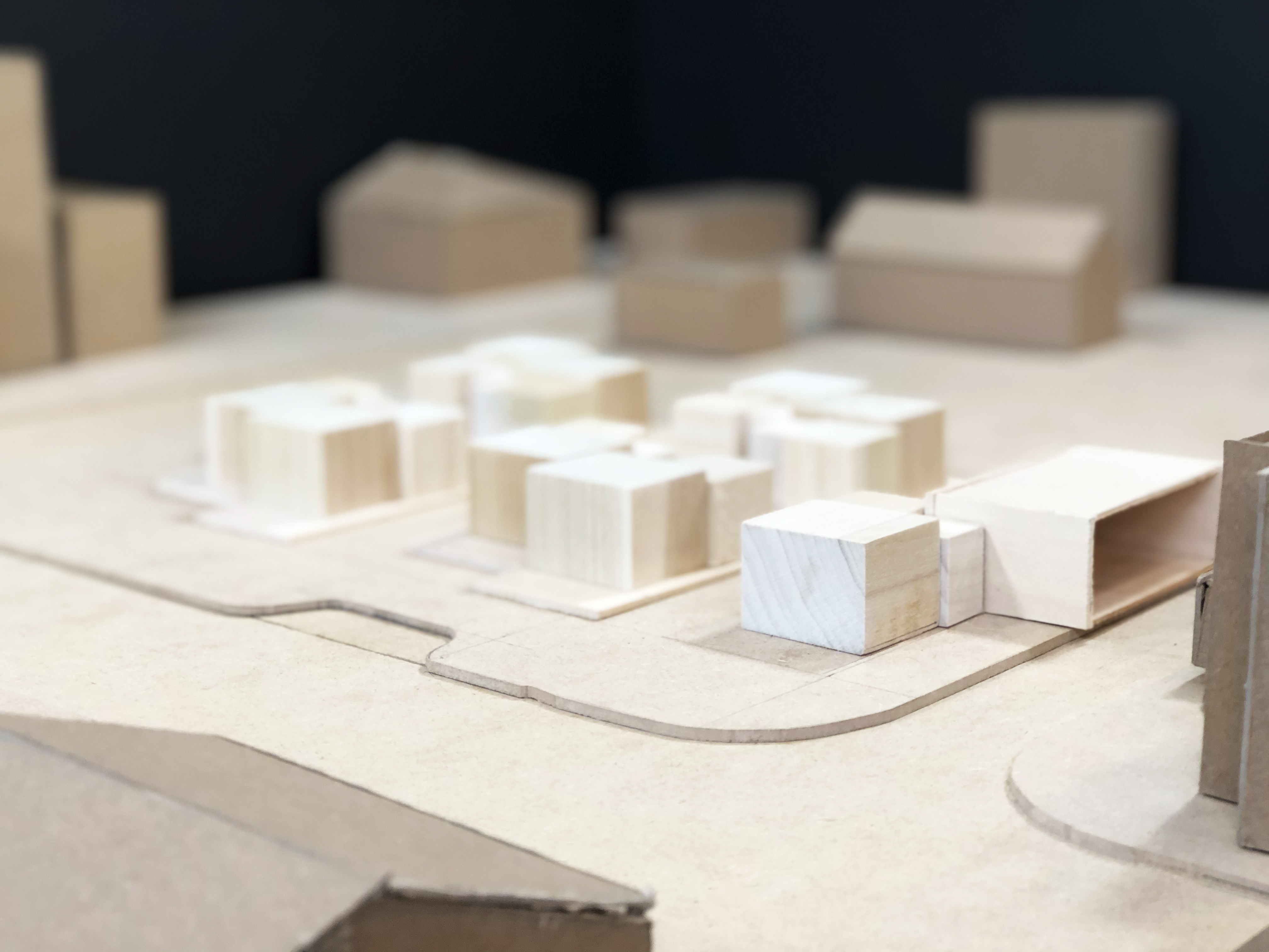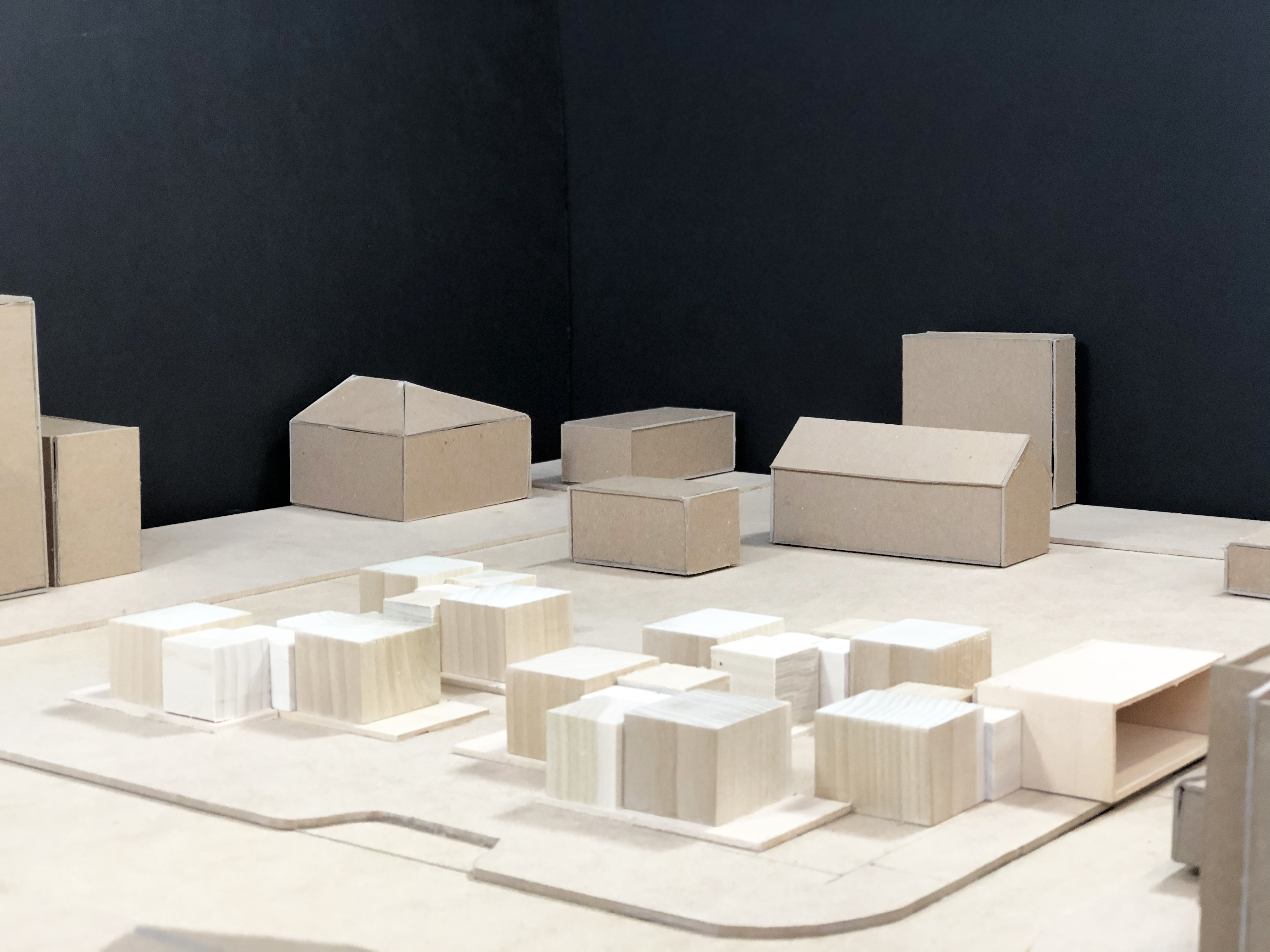 I wanted to continue the idea of the gradation from the collage and the collage model. I did this with a banding that connects the different programs of the units with volumeteric elements that transition into planar elements. The bands signify the openings. The program is laid out into entering a main living space that is open to the kitchen and the dining space. The bathroom space is accessible via the living space and the bedroom space.