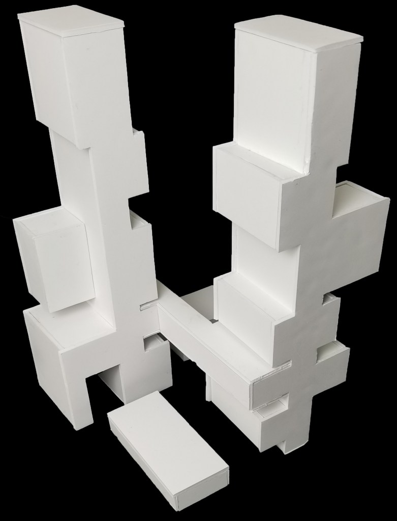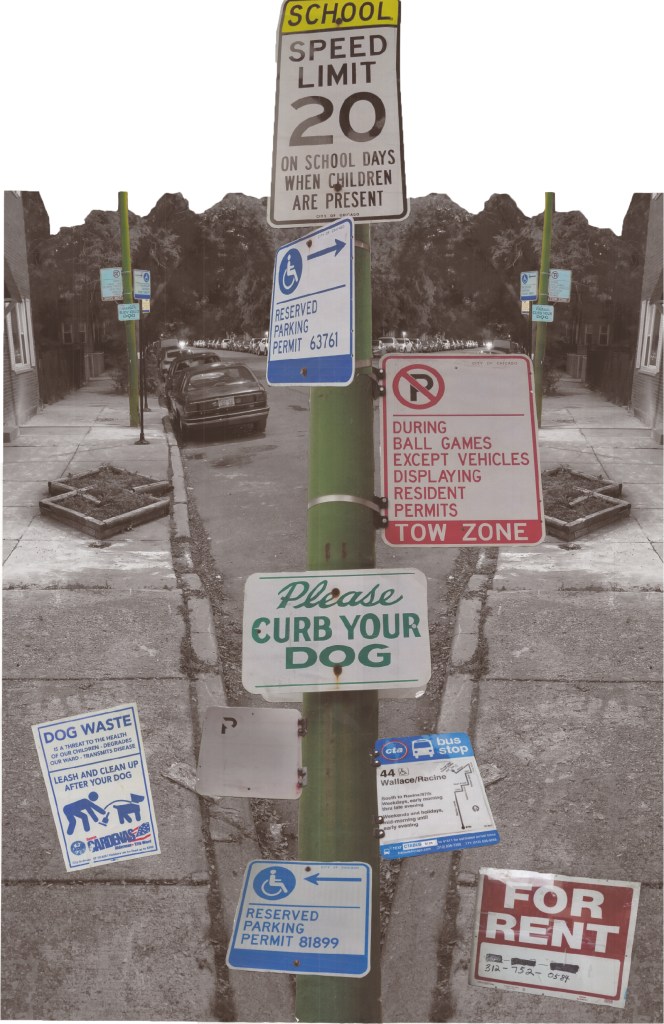 For our collage we were given a specific street in Bridgeview and were supposed to find one kind of architectural genre to extrapolate upon. Naturally one would decide to do something such as material or house details like windows, doors, etc. For my collage I wanted to incorporate an element of architecture that isn’t so obvious. I believe that the use of traffic signs, and signs in general, in a busy area like Bridgeview are a vital part in the community and the architecture of the community. The signs guide people, traffic, and where buildings are placed. Then I explored the shape of the sign and the way they are strategically placed and in a sense “joined together” with my model. The boxes signify the different sizes of the signs to show the different significance of each. They are also joined by a beam to illustrate how each post of a sign correlates with another.