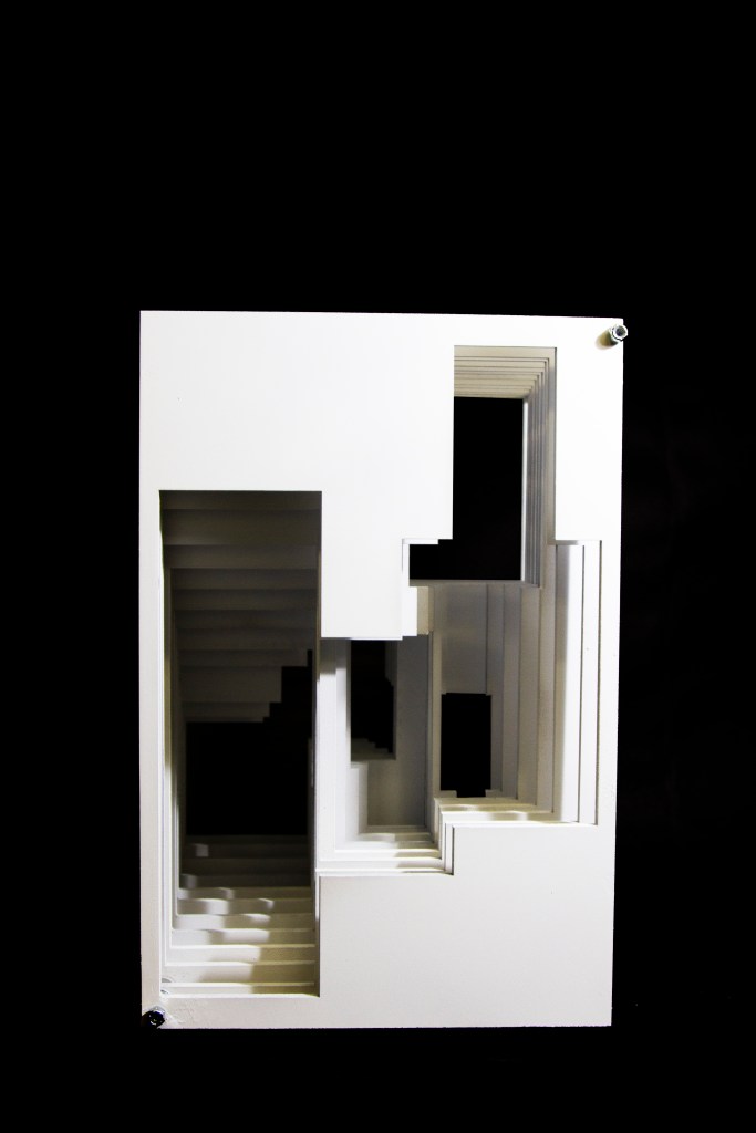 Transitioning into a 3D model from this collage I decided to focus on perspectives and how they meet. In my model, I use 4 perspectives taken from my collage and played with how they were placed in order to show the interaction of the perspectives. This showed an internal path within my model.