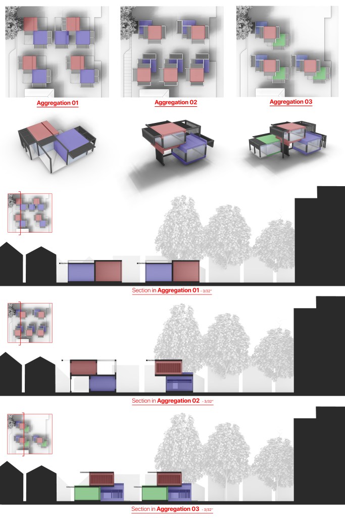 for my aggregations the reviewers commented on the evolution of my unit box. they liked the idea of having a development in the idea of stacking the boxes together in each aggregation as I started with to boxes at the same plane the I moved in to have them stacked in the z-direction and then merging the two methods and getting a 3 units