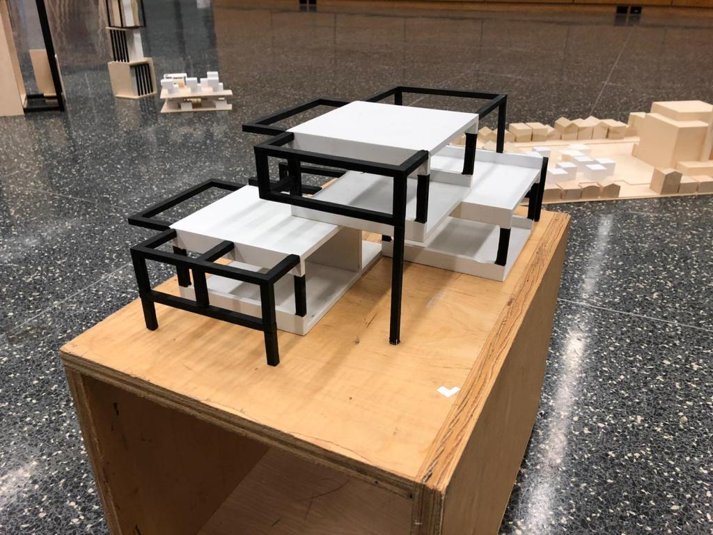 In my Collage model I tried to express this contrast and feeling in a more simple way by creating a simple box that it’s first half is enclosed buy planes while the second half contains only the frame and the planes are still under construction.
