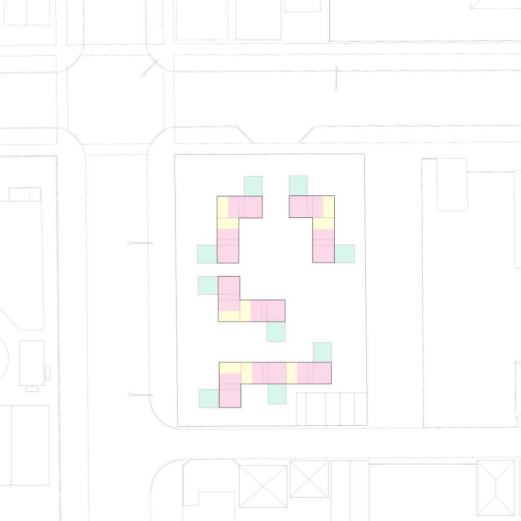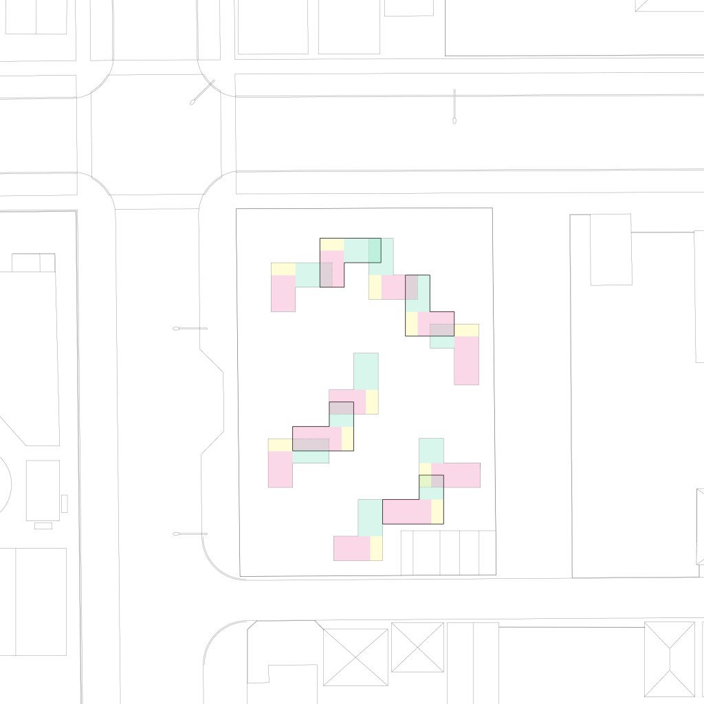The main focus of the variety of my three aggregations were to create a variety of communal spaces, both public and private, that aim at ease of accessibility to the public transit facilities around the site.