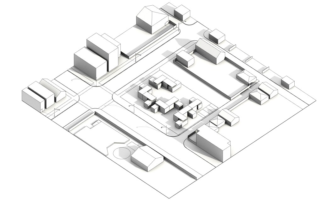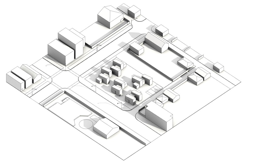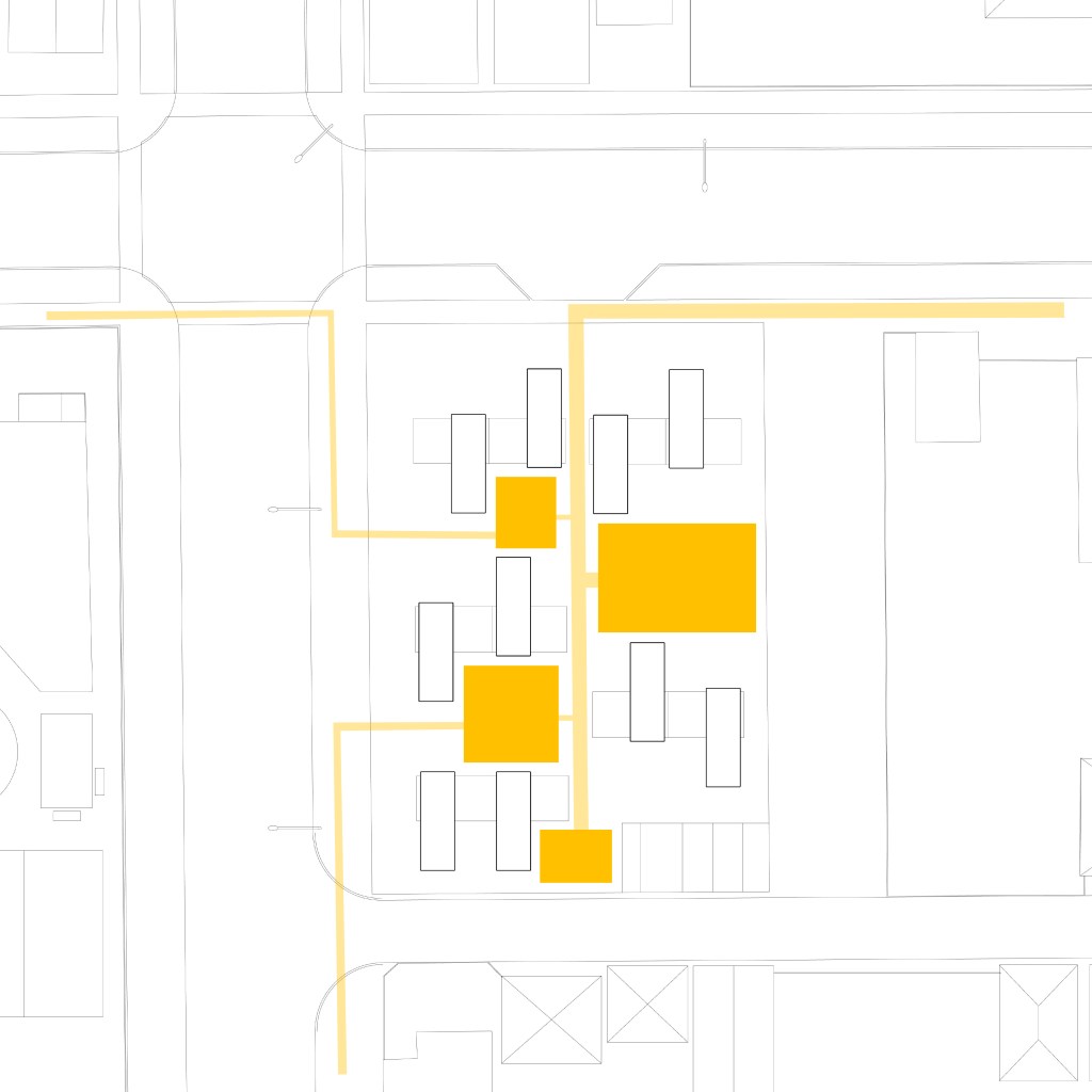 This series of axonometric renderings show the light studies of the different aggregations during the time of year where the condition is the worst. These renderings are taken at noon during the winter solstice.