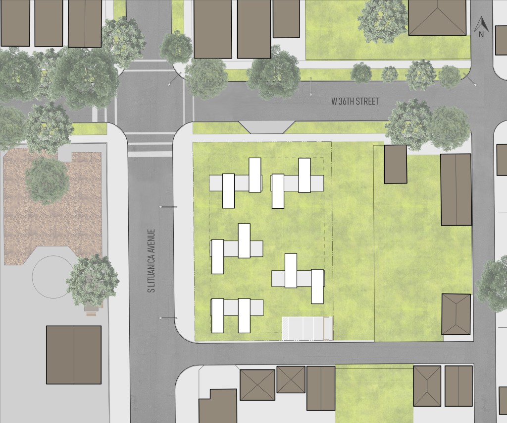 The site is on W 36th street, just one block west of S Halsted, a vibrant semi commercial strip. There is a large recreational area, Donovan Park, just across the street of our site, which has baseball fields, a basketball court, and a playground. Our site isn’t surrounded by many tall buildings, so there is exceptional access to direct sunlight year round.