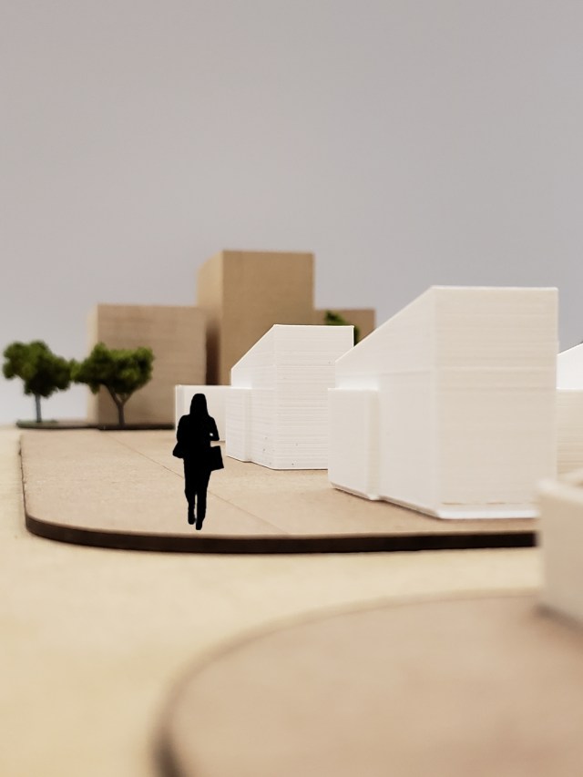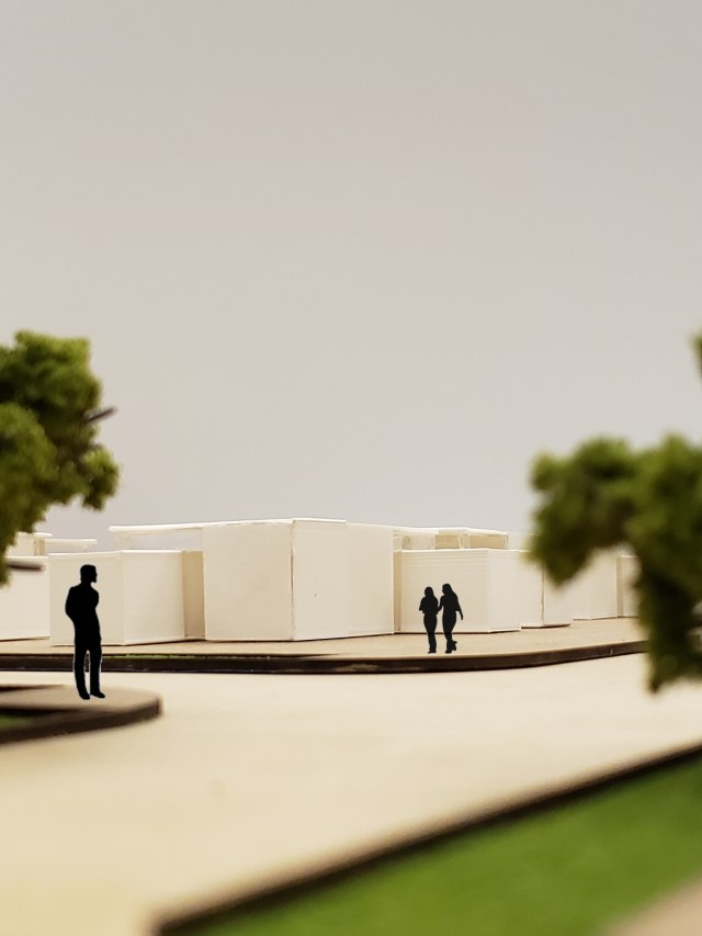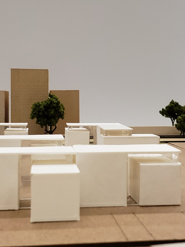 Photographs I took of the different aggregations placed into the site model show the scale, sensation of approach, and perspective on the site.