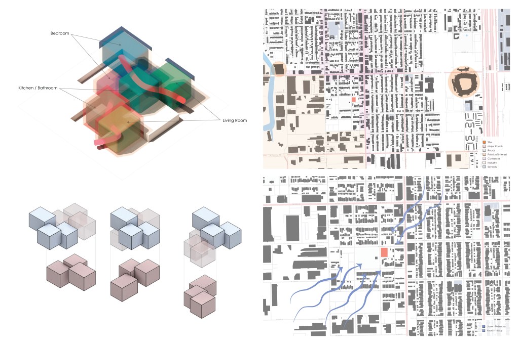 - Claim all of the site that is given, similar to the three dimensional collage model. Also the spaces in between the units in the aggregations should become more open and porous.