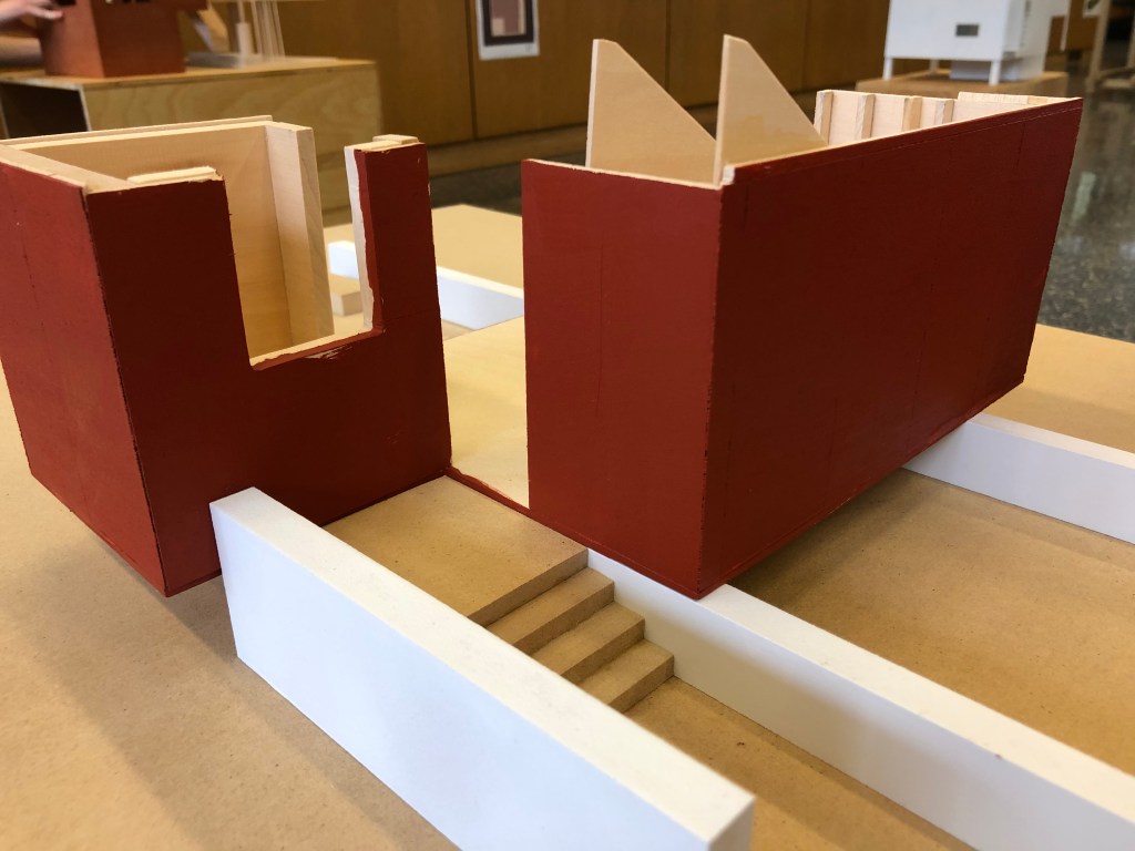 - The recessed entry makes the building more private, and emphasize the idea of grid system.