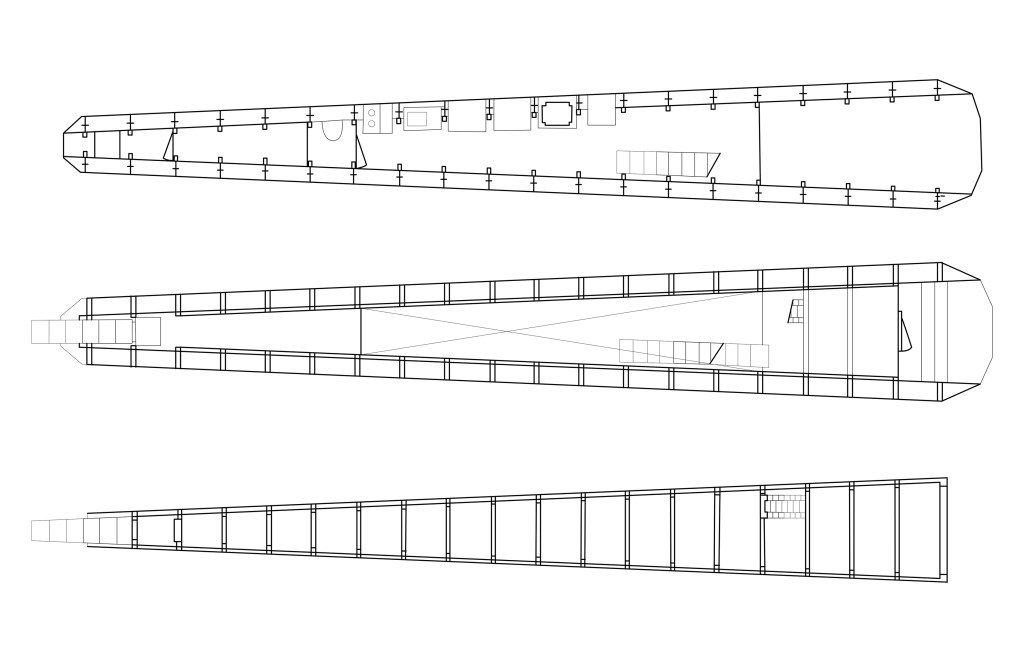 - The shape of the building is formed by the layered frames, covered by the skin.