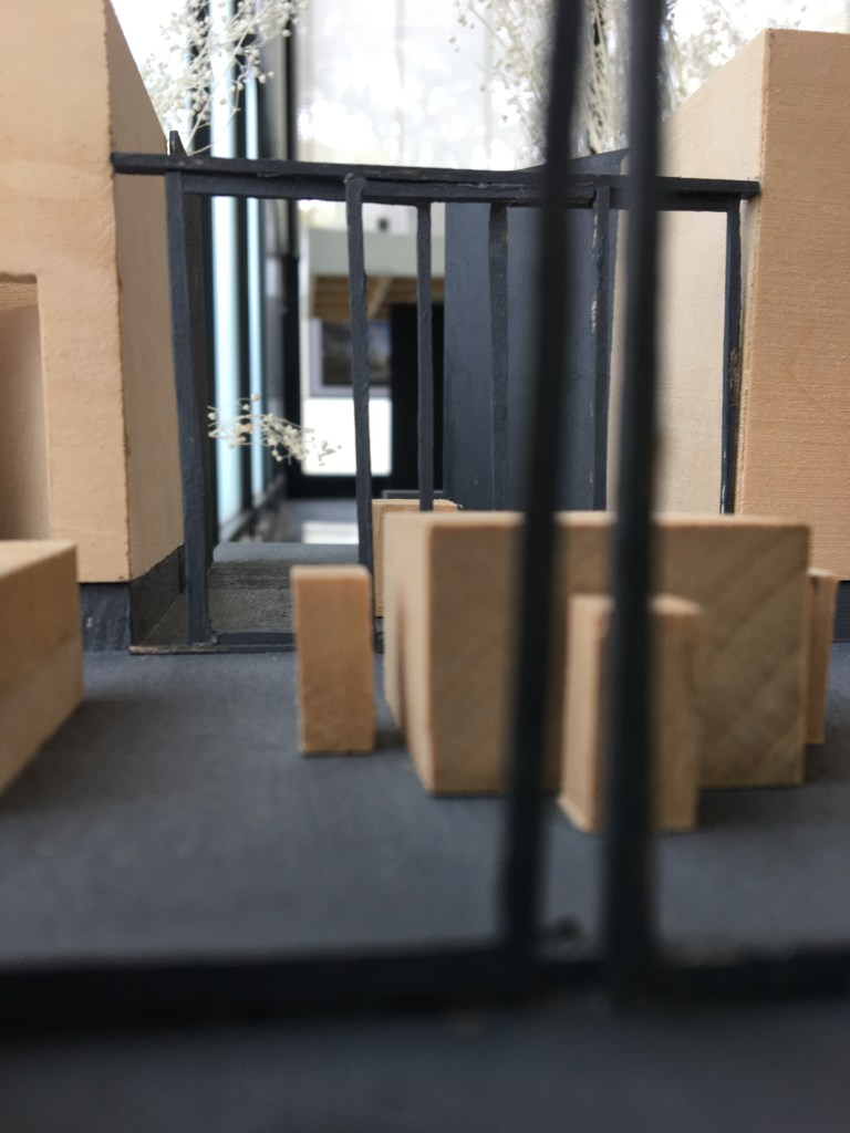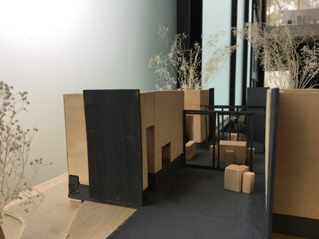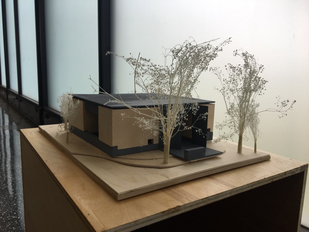 - Use of vernacular material (rammed earth) fits the context of the environment and is used to cool and heat the desert home.