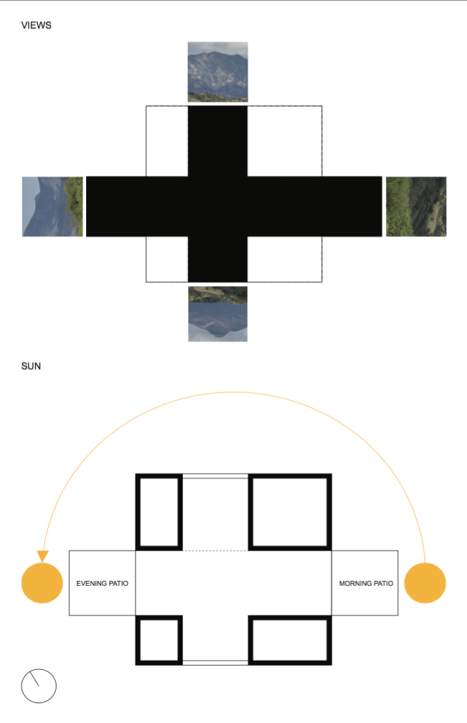 - Patios in the home are on the east to west axis, providing sunrise views from a morning patio and sunset views from an evening patio.