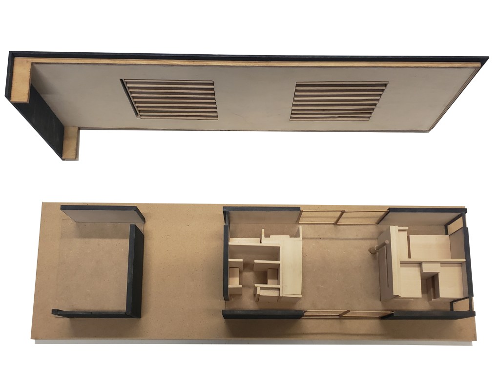 - space saved by small “bar” kitchen