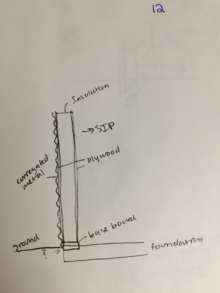 Whatever directions the corrugations run, probably small battens at 2′ spacing running perpendicular holding them off the plywood slightly. We’ll discuss the waterproof barrier…