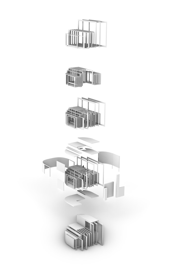 I wanted to show how two types of frames (structural and exposed) cross each other. So, with my unique drawing, I showed how the structure comes together in stages. Materials are also going to be added with renderings.