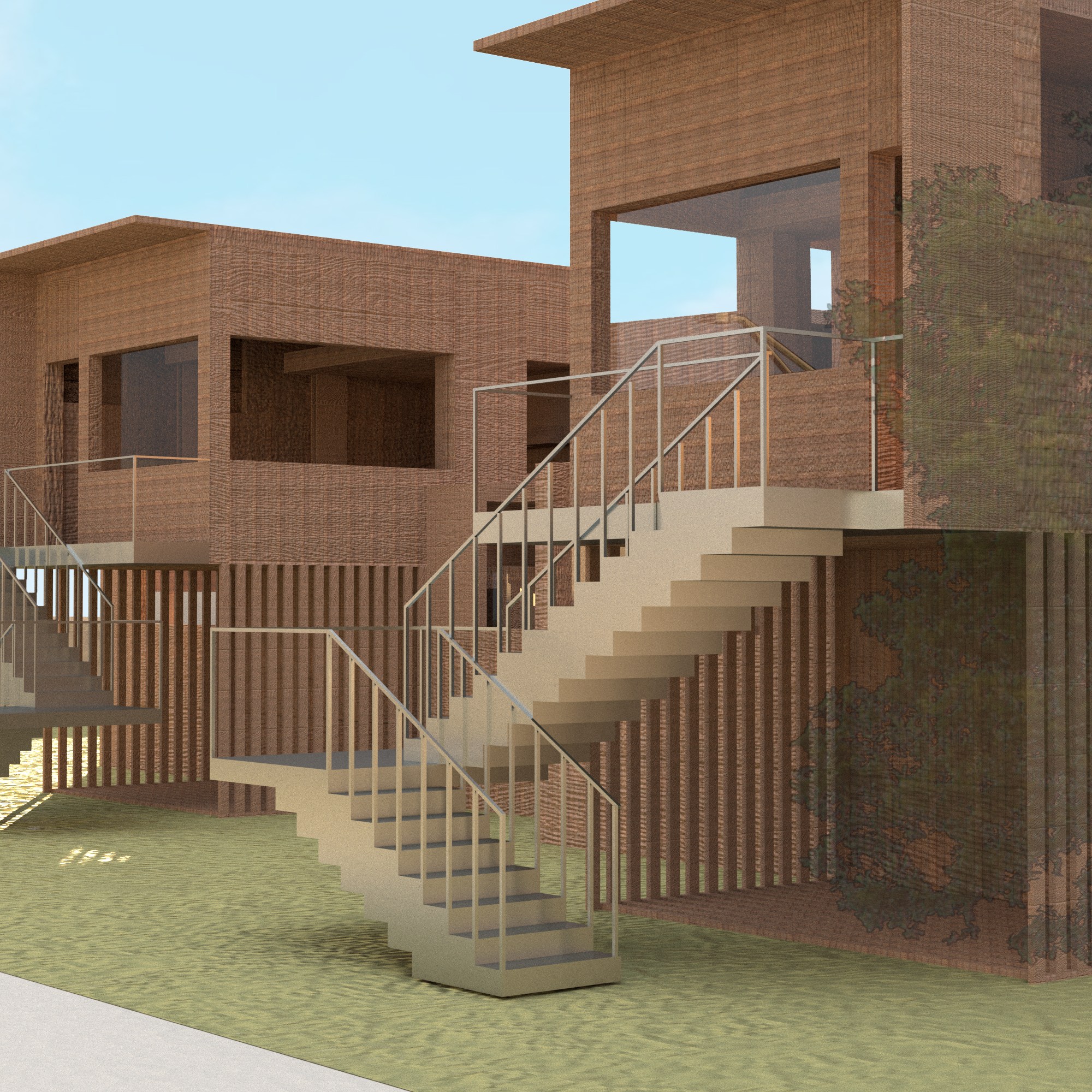 As for the aggregation, the stacking also creates a gradation of different spaces throughout the site while opening up space on the ground level of the site itself.