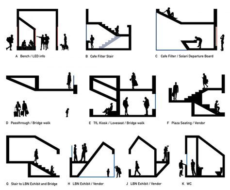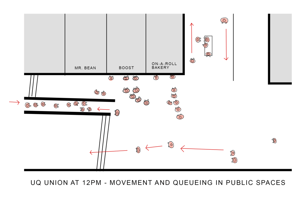Especially within existing spaces the movement of people or groups can be tracked or diagrammed (Design software also can create predictive models.)