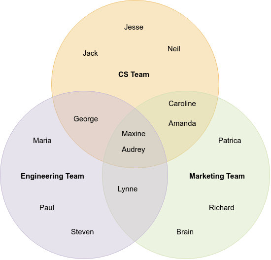 Venn diagrams can be used very literally to show complex relationships between sets of data or loosely adopted to show the concepts of overlap, sharing, as well as separation or distinction.