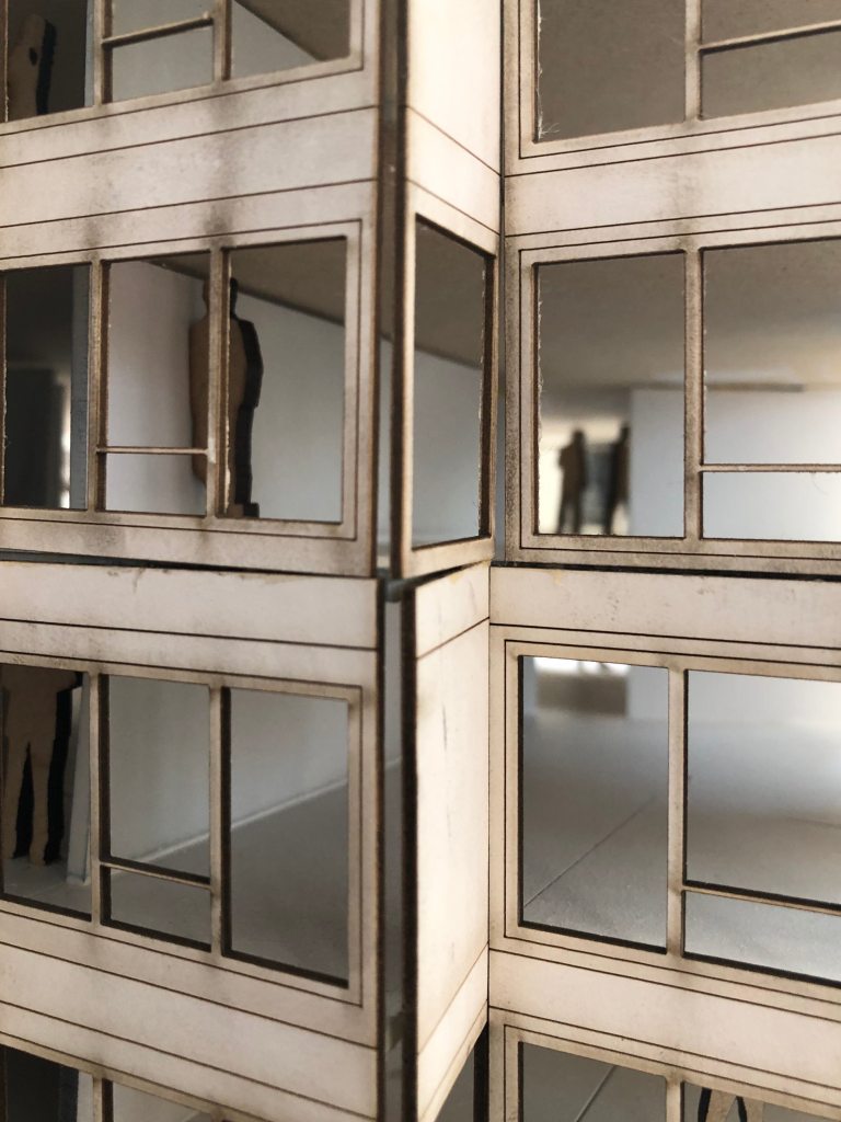 Private and personal space: People can view into the private residence spaces by standing in the courtyard because of the floor to ceiling glass windows allowing interior views.