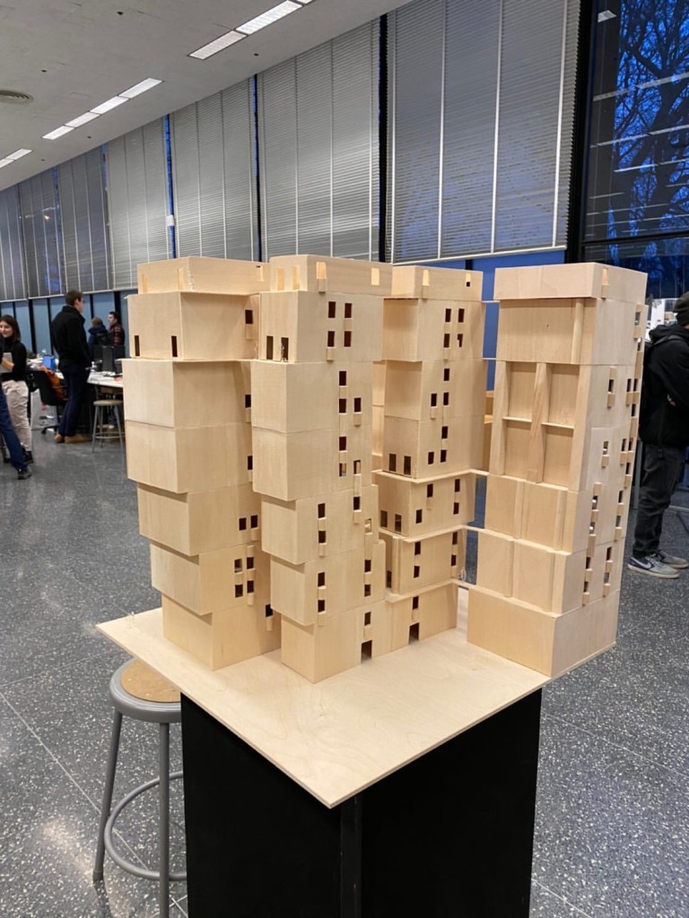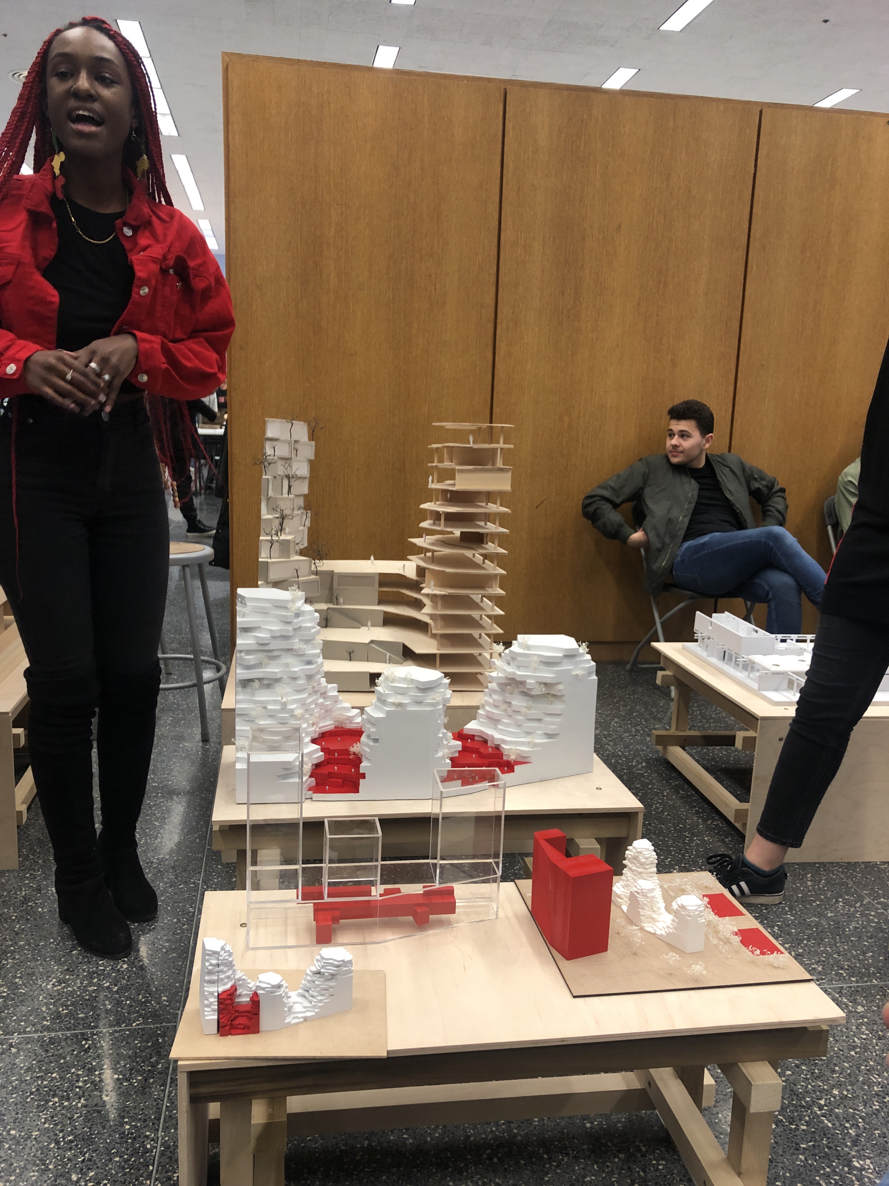 Bind — it is a bind because the colorful balconies bind ( combine) the units together, as they are so close together. In that way people can communicate with one another. Laminate — it’s laminate because the shifting of paired units are laminated by the court and also because they are put close together that creates the uncomfortableness in private areas.Mix — it is mix because of the mix of programs all throughout of the building. There isn’t a level where it is just one program, the different programs of (Office, DAC, retail, cafe, housing, and play) are all mixed around with each other (exceptions of the top floor that just housing)Intersect — since the facilities are so close to each other and they provide different opportunity like : entertainment, dining, working , etc.. they attract people. It means the the functions are interesting. The commercial area intersect the private residential area. Blend — it is because in this building there is a smooth transition between urban and environment. So the building itself blends those two with it’s landscape form.Gather — it is gather because the project doesn’t have individual balconies but terraces. There are skydecks in each floor that provide a space for gathering for the residences. And there are pathways that connect two buildings together that lead to the sky decks.Bundle — you can see bundle in layering of floors. The ground and second levels contain commercial level like: offices, support spaces for the veterans, bike storage , parking large and a public courtyard. Then goes four residential floor and the uppermost level has a green roof, large public patio and edible garden with panoramic views of the area.Weave –circulation weaves around and into the building. Paths go to the public community space and to the private apartments. Overlap — its because the building has a central axis and the over which each floor rotates. Basically each floor has a different floor plan and different programs so they all overlap each other. Merge — it is merge because the units are modules and people can buy combinations of the modules over different floors and move walls around the way they like. They can also sell their modules to neighbors.
