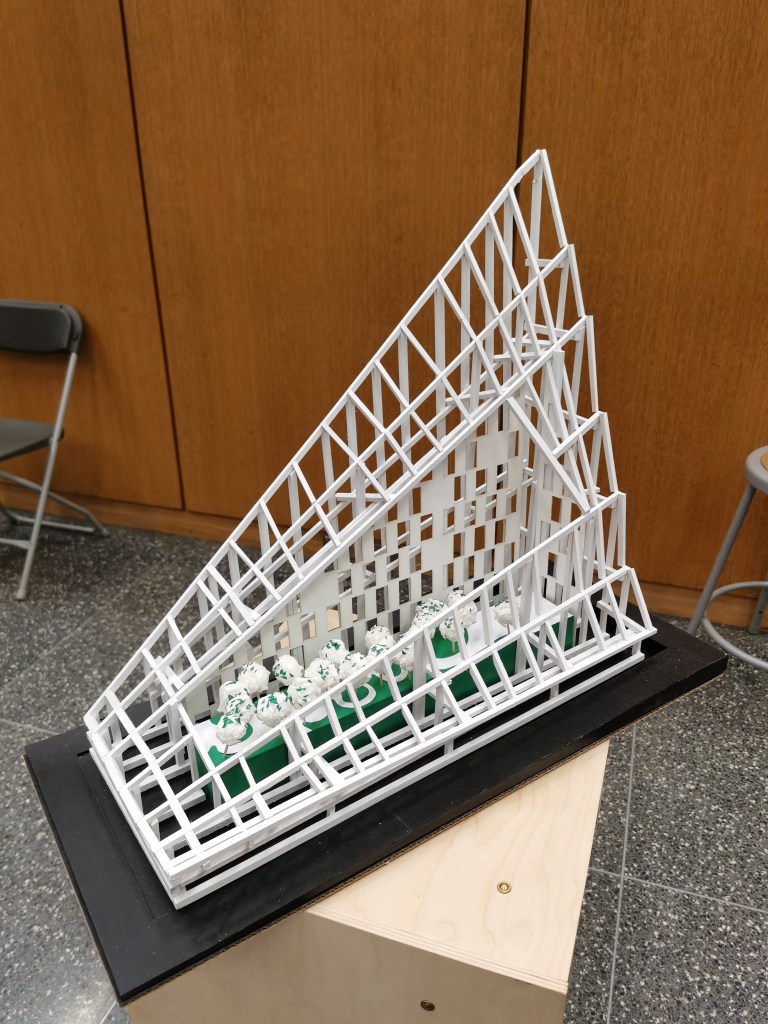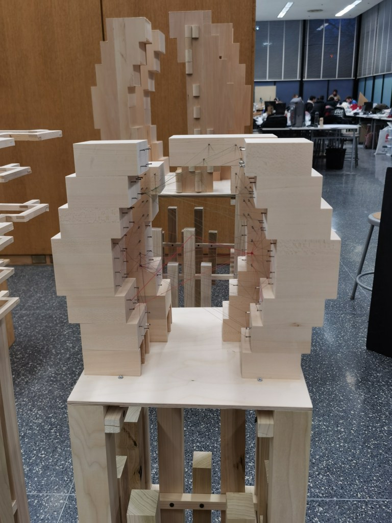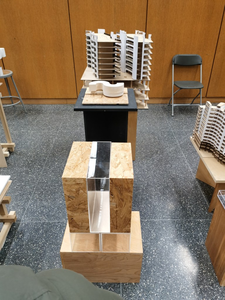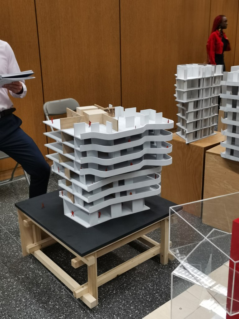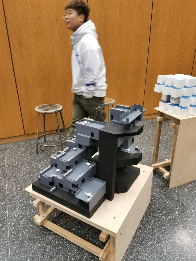 Phase 2: Review MIX This concept model shows how the mix is going on in their case study, different kings of color cubes shows how the different functions mix together. Laminate Laminating two private spaces with a public space with a parallel shape shows how the River City deal with the sharing space. Overlap Because the entire building rotates along the Y-axis, the only connection between the floors and the different programs overlaps vertically. Gather Rather than have the garden or open space for every single unit, the architect decided to gather them and create a big sharing space. Weave The connection or the circulation between the units is weaved together instead of simple circular walkways. Intersect Each unit of this building intersects other units either on the left or right and also upper or under the unit. Merge Merging the public sharing space “the garden” into the private space “the building” is one of the main design concepts of this building. Bind All of these different colors or different sizes units bind to the main building with the structure and circulation. Blend Rather than blend the different kinds of units in 3D, the architect decided to blend them flatly and then do the. Bundle Bundle the two-floor units around the passway is a new way to think about how the circulation can be in an apartment building. Share this: Share on X (Opens in new window) X Share on Facebook (Opens in new window) Facebook Like Loading... Related