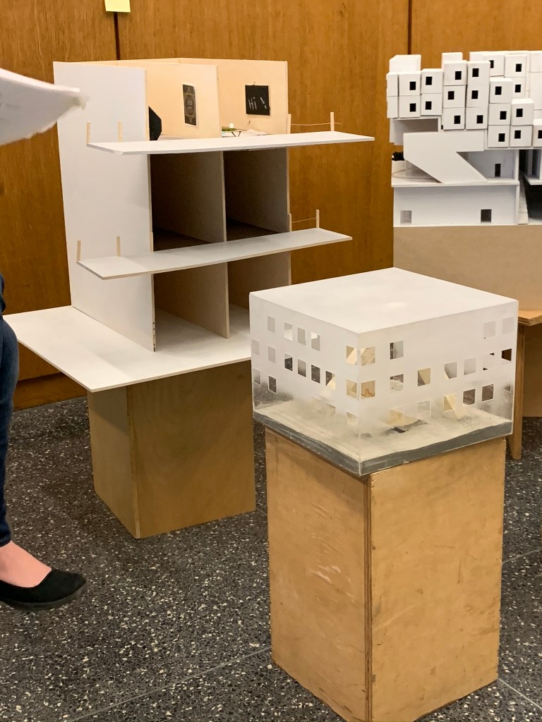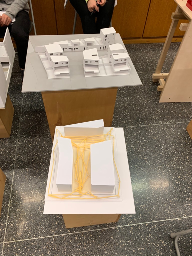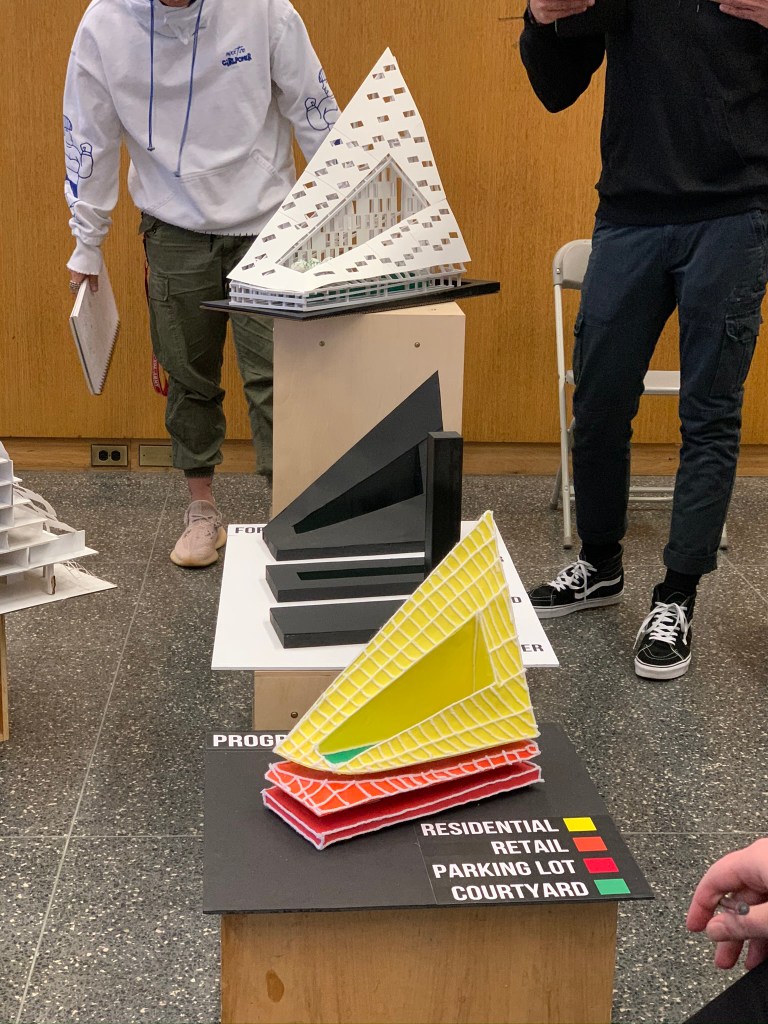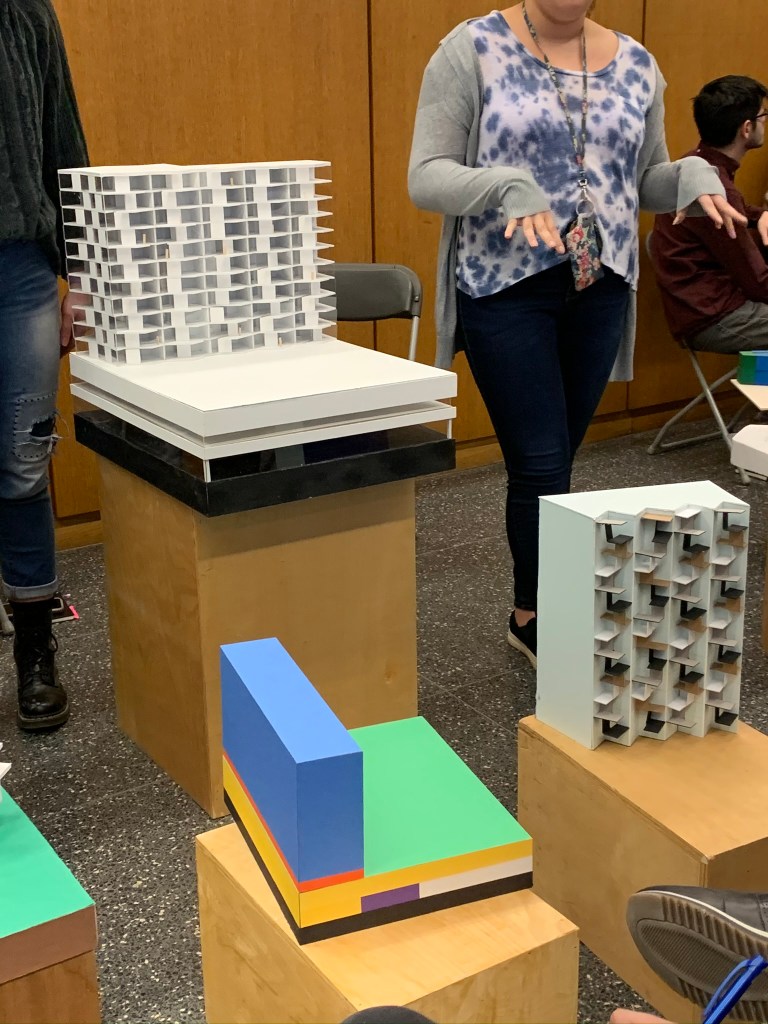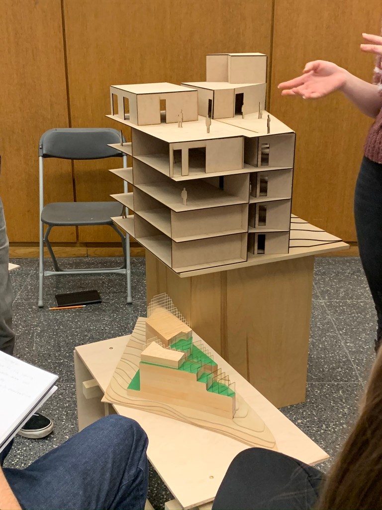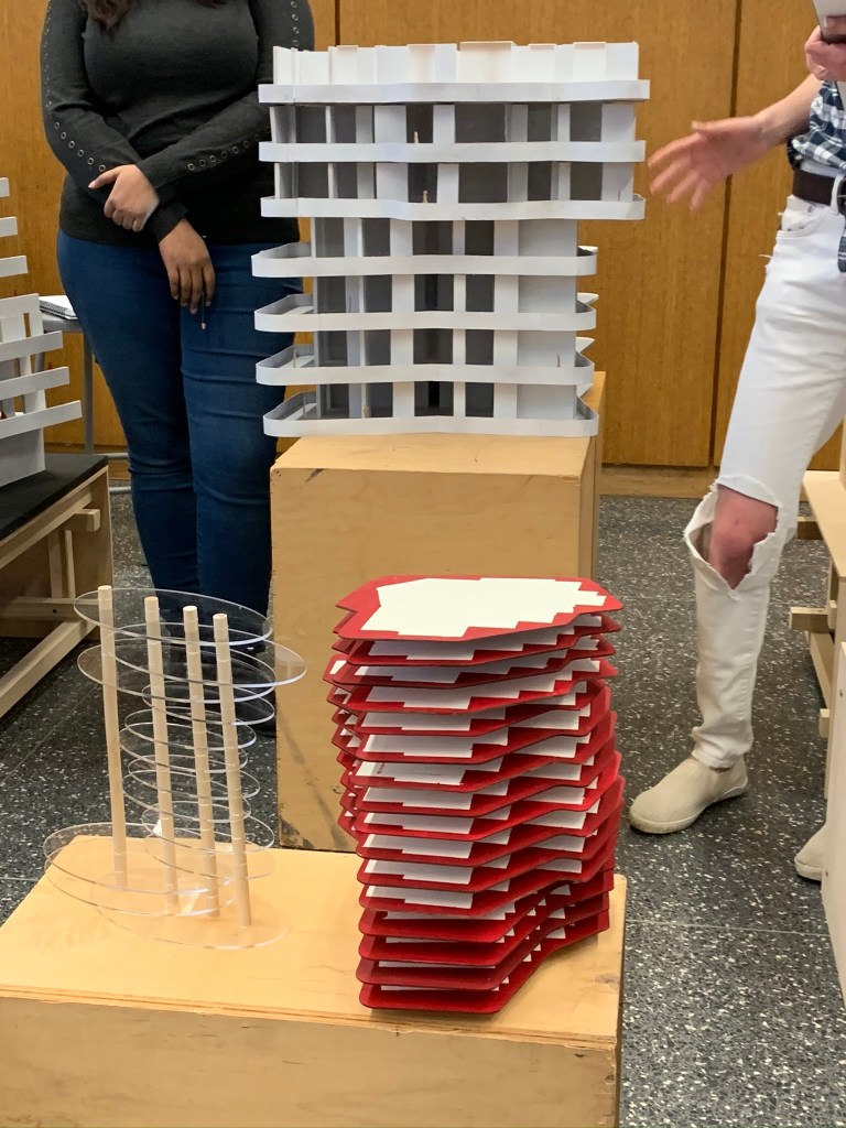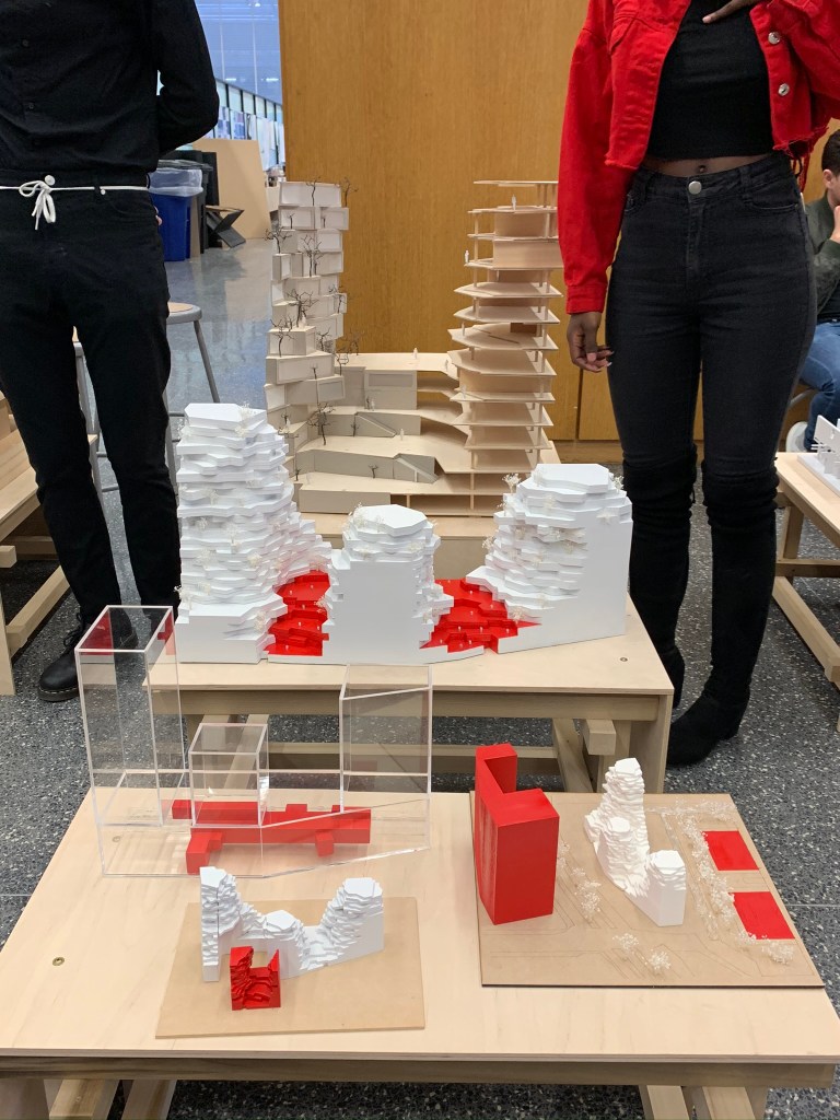 Overlap: The program of the buildings piece together in abstract ways. All the floors are organized in different ways.Intersect: The buildings intersect into one another and meet in a common courtyard that is shared by all the buildings.Merge: The spaces are all pushed into one another and combine spaces. The public and private are close to each other, there is not much separation between programs.Blend: The buildings appears to be directly placed on the land that it is built on. It was blended into the topography to fit the site.Bundle: The units are combined together to create a single space. The piece together to group the separate rooms into one.Mix: The program is all mixed together stacking one another on top. The building is abstract from the other buildings surrounding and mixes into the skyline rather than blending.Weave: The rooms appear to be separate but all weave together when seeing in section. The units are not compromised on a single floor but rather move up and down floors.Bind: The balconies surrounding the units are not separated by any barrier. Thus they are continuously wrapping on each floor binding the units together.Laminate: The layers of the building all showcase different amenities. The layering of the building in a convenient way allow for ease of use of each program.Gather: The lower public walkway emphasizes the idea of bringing people together. This common space forces people to gather into this area.