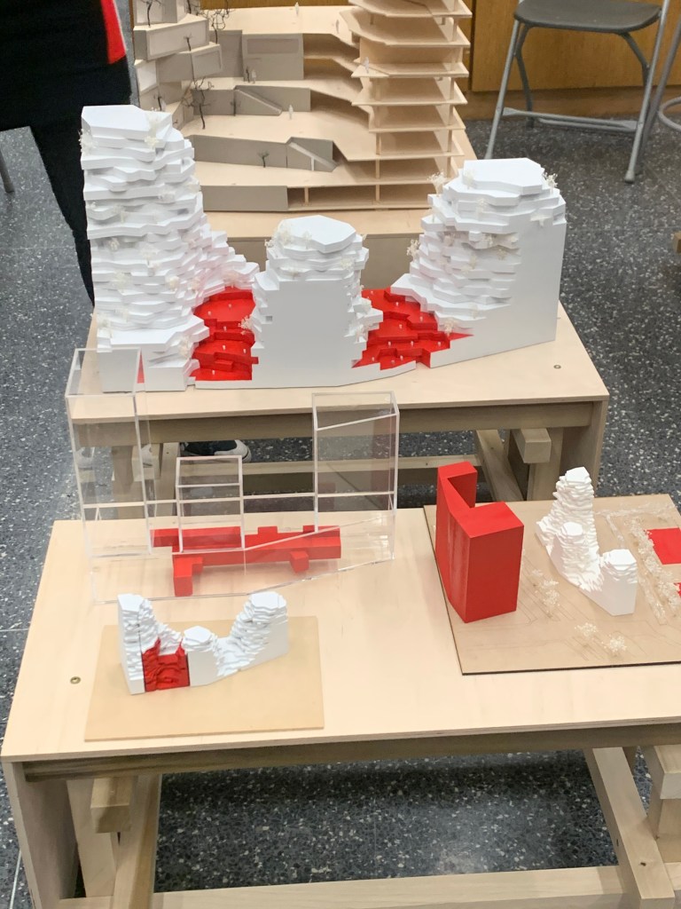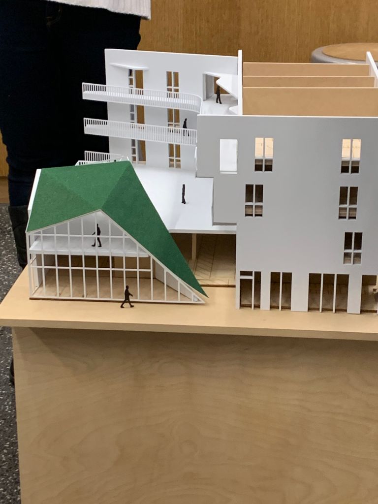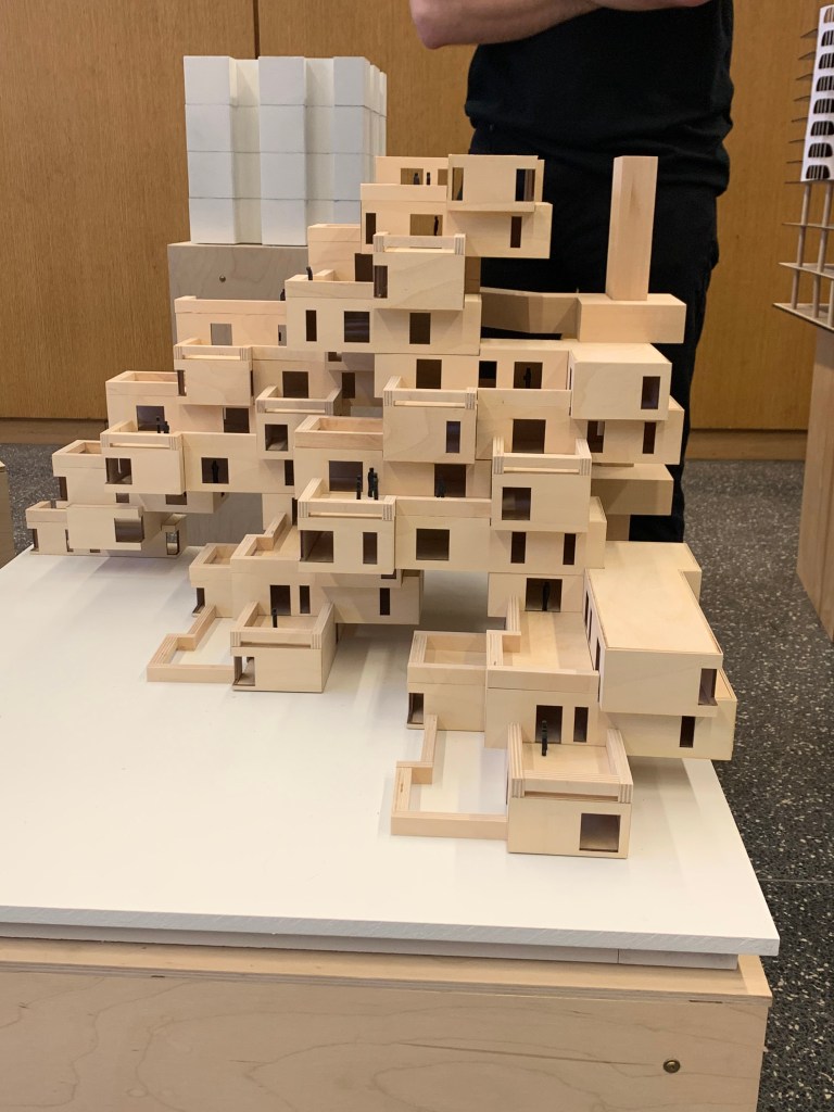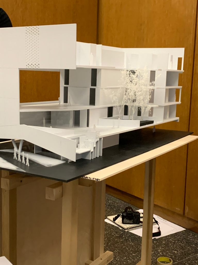 Blend : This building blends the use of public and private space. Having public space within the building also blends what people are using the building. There are the people who reside there, and also people who come to just visit. Intersect : These pre-fabricated units were made so they can be stacked and intersected. This intersection allows for interesting patio space pushing the boundary of public and private space. Weave : The circulation throughout the building doesn’t just go up and down or side to side. The circulation weaves in, out, and around the building to create unique spaces between. The circulation weaves from more publicly accessible spaces to more private spaces. Gather : Instead of each unit or individual having a personal balcony, each floor has a gathering space. These gathering spaces can be used by any resident within the building. Overlap : the public and private spaces overlap each other creating these unique balcony opportunities which residents could then communicate with one another. This also overlaps the natural environment to create the form of the building. Laminate : The lamination of spaces blur the boundary of what is public and what is private. Because the programs are vertically laminated in close proximity to one another, it is hard to differentiate were one program starts and one program ends. Bundle : There are two main bundles in this building. The public bundle, the first and second floors, which contains offices, courtyards and parking. Then the private bundle which is made up of the remaining floors. Merge : In this building, one unit doesn’t necessarily have to go to one person. One person can merge a group of units together to create a larger unit.Mix : This project has a mix of program. Along with residential living, there is also a bar, a hotel, a mall, shops, and a track. Bind : The residential living and the community center are bound together by a central patio area. The private sector has access to view the patio area and the community center visually which binds them together.
