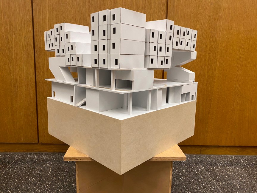 Overlap: Each individual unit is clearly not on a contemporary grid like system, some of the spaces overlap vertically but don’t intersect and interact.Intersect: each unit is oriented differently than its adjacent one potentially shares a balcony with another unit, intersecting and combining spacesMerge: Marina City serves to be a complex that you’d theoretically never have to leave, merging as many of life’s necessities (lodging, shopping, exercise, etc.) as possible into one complex.Blend: This orphanage blends all gender and age groups into the same structure, and even though they are separated into different wings of the building, the building overall represents a blend of different ideas and experience.Mix: A similar concept to Marina City, River City serves to mix and combine multiple purposes into one building like shopping, lodging, office space and health clubs.Weave: The circulation around and through the building nest represents weaving through its multiple different paths to get to the same destination.Bind: The arrangements of this building forces the user to look at one specific moment on the site, binding your eyes to look one specific direction.Laminate: the separation of public, semi public and private spaces by each individual section/ floor creates a lamination off different uses and intentions.Gather: The multiple public spaces all throughout the site at different elevations encourages the users to gather and interact with each other.Bundle: A building that serves multiple purposes to accommodate for its users so they have no need to leave the complex is bundling these purposes/ uses into one continuity.