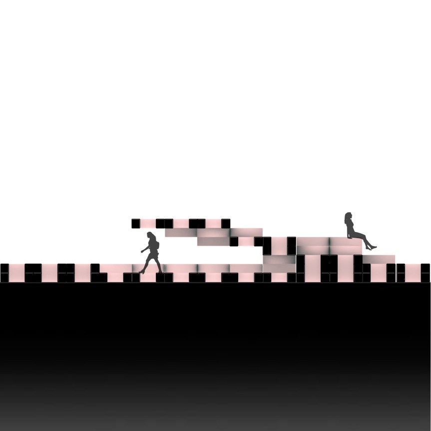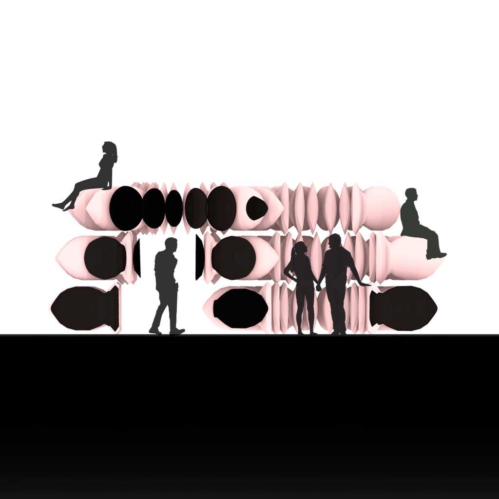 In the goldfish crackers model I was working with the weaving shared concept. The overall shape creates the circulation that weaves around. Moreover, my concept was to create a space where the person will decide by her/himself how she/he wants to use it as each curve of the object has it’s own unique purpose.