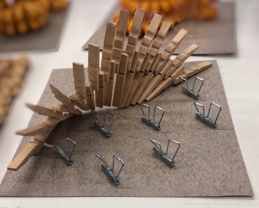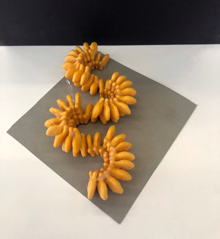 Goldfish Model Process : In my study models I was trying to find a way to clue the crackers together. The logical solution was to attach crackers by tails and in that way I was getting arches. Those arches created a space that weaved around. In that way I was able to establish the concept of weaving.