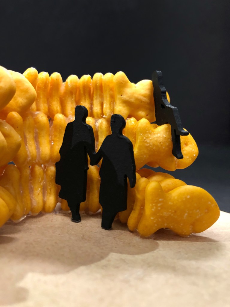 Found Objects: Heart Shaped Cheerios , GoldFish Crackers, Clothespins.