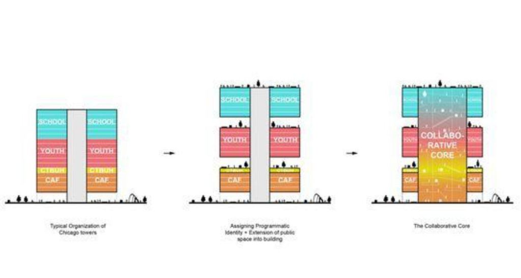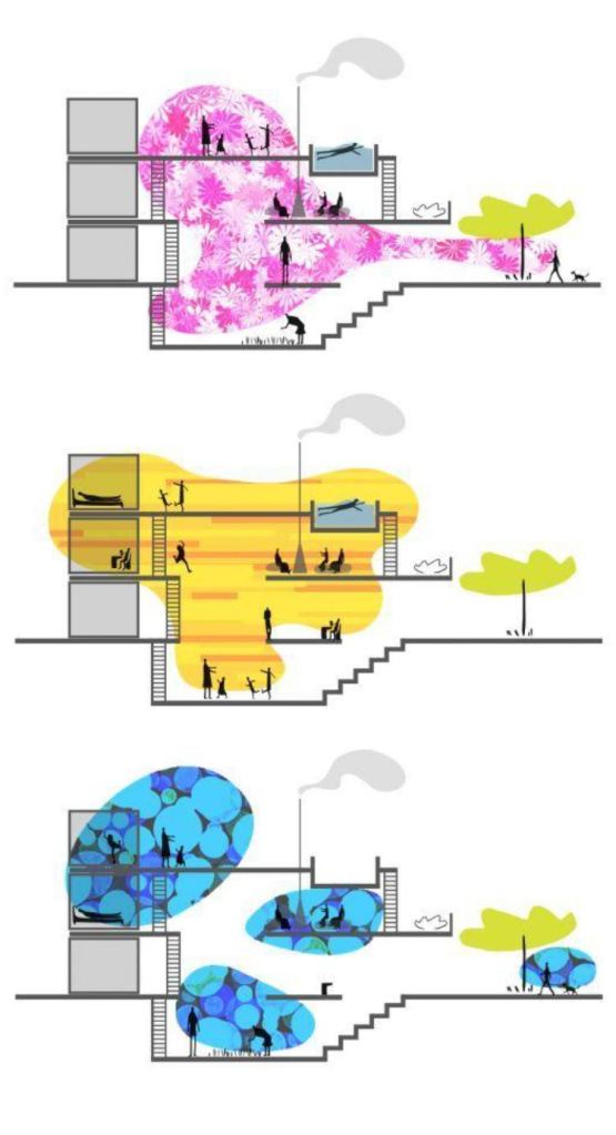 2 of your precedent diagrams use a language of discrete program zones (and overlap zones), while the other is showing different senses of grouping within the same overall building. Both good precedents- I’m guessing the latter might be harder to utilize at this point, but pick one (or try both) and make diagrams.