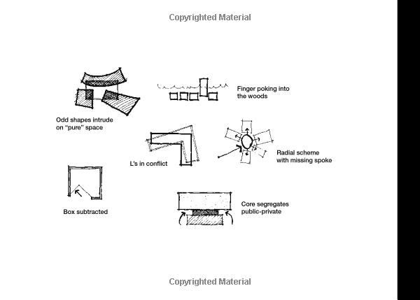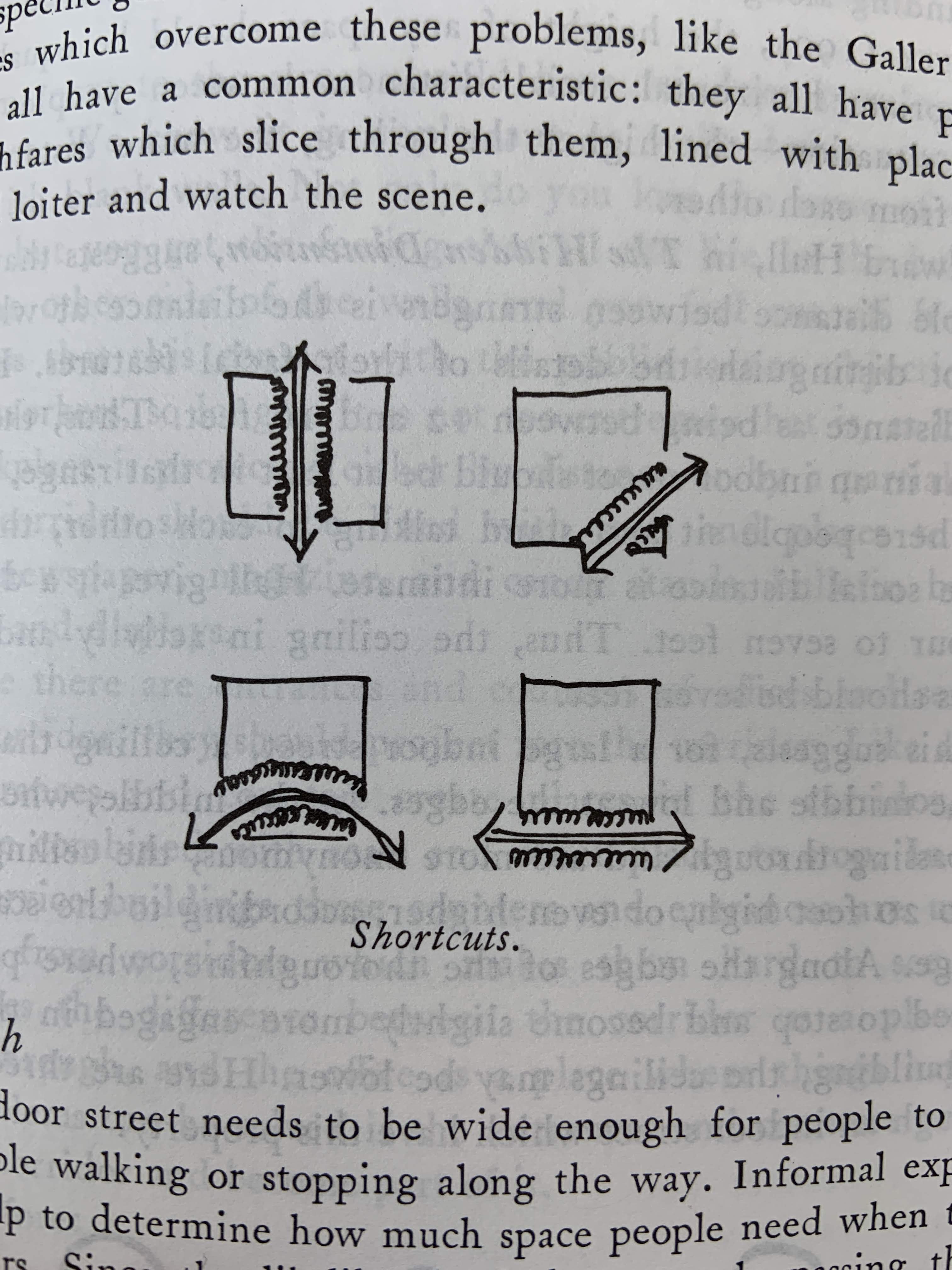 Flipping through A Pattern Language I found some diagrams and concepts that could be usefully applied to the architecture in terms of sharing. The concept of shortcuts, clustering of working, relaxing, and living spaces, and creating spaces that mix people of different ages could all help to create a homely environment in this shared housing unit. I also found some useful precedent for simple Parti diagrams in 101 Things I Learned in Architecture School.