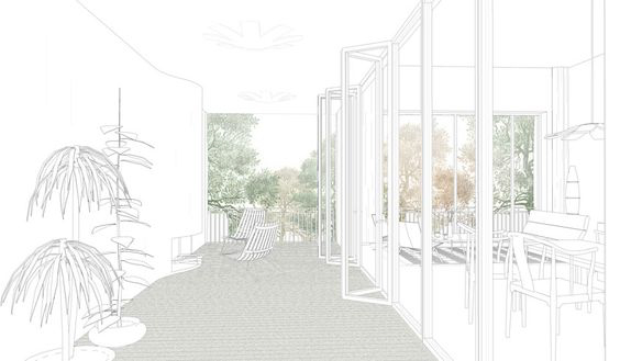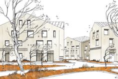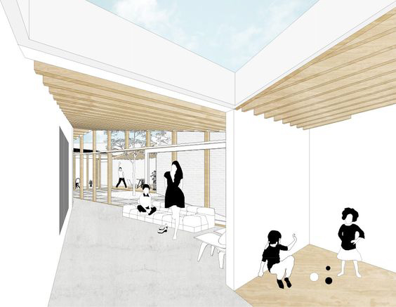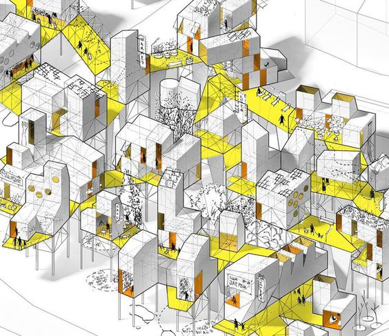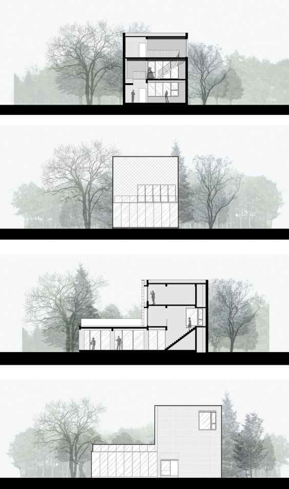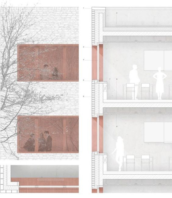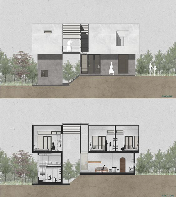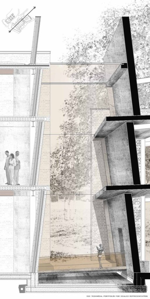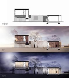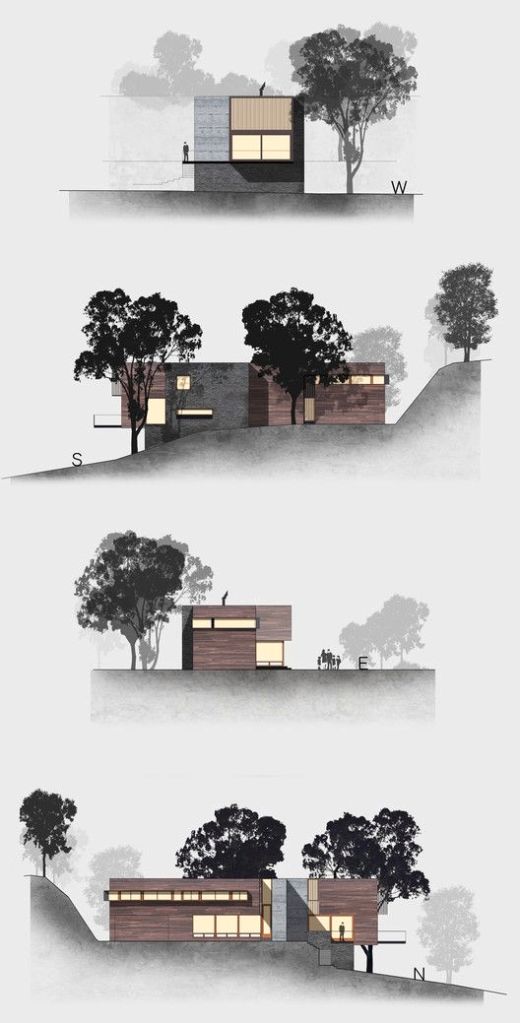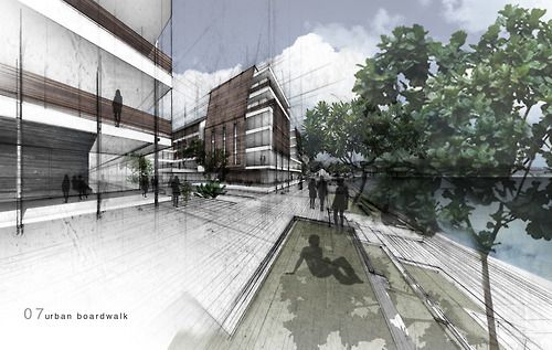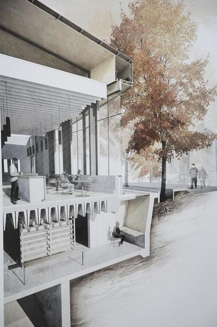One main point: you are not required to use a special program, make photo-realistic views, or utilize any one style or technique in developing your drawings. What’s important to me is that your drawings show your project well and are made well. I’d much rather have one good line drawing where you’ve carefully controlled your lineweights and photoshopped in a few select things than 5 fully “realistic” renderings where the overall effect of all the materials and lighting and entourage is less successful. “Less is more” can apply to renderings in both quantity and technique.