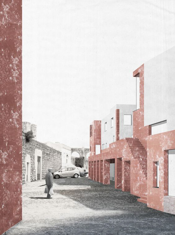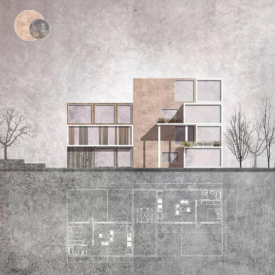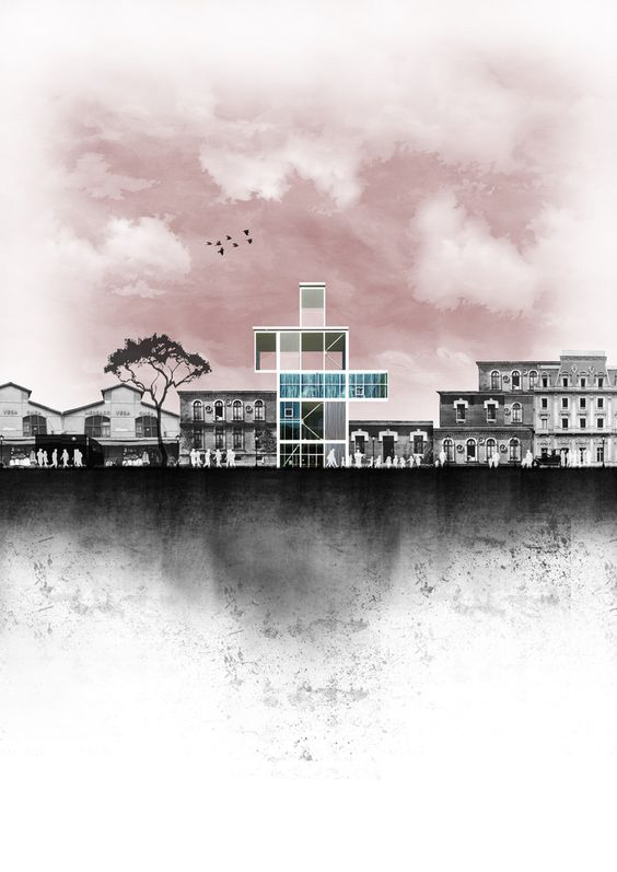 The skyline in the background, the adjacent buildings, even less identifiable context like sidewalk and street trees are readily acquired from site photos or the internet (everything is on Google Street View) and photoshopped into perspective views. Note how commonly the image is made black/white or otherwise manipulated to unify it with the representation of the project and/or draw less attention to the context than the project
